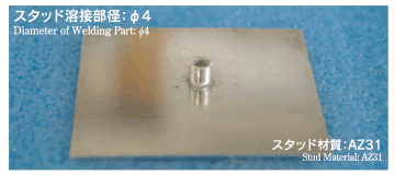 概要 マクネシウム合金のスタツド溶接技術は弊社の親会社であ る【有限会社アジア技研】がその将来性を認められ、福岡県 からの助成を受け、国立九州工業大学と福岡県機械電子研 究所の協力により研究開発を行った技術で、その成果、およ び独自性は2003年の溶接学会発表において実証されてい ます。 |